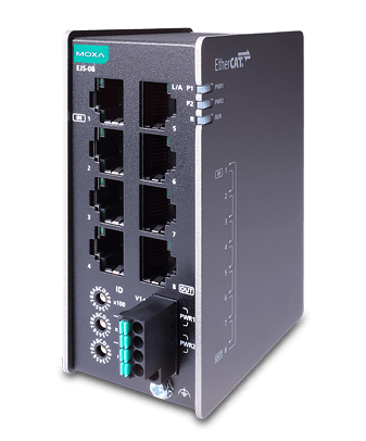 EtherCAT (Ethernet for Control Automation Technology) is a high-speed industrial protocol designed for real-time systems. It provides minimal latency in data transmission, wide topology capabilities and a high level of reliability, which makes it indispensable in industrial automation, robotics and control systems. Modern industrial enterprises strive for flexibility, scalability and fault tolerance. That is why EtherCAT devices such as the EJS-08 and EJS-08-T play a key role in building efficient and reliable control networks. MOXA's product range also includes devices with 4 EtherCAT ports: EJS-04 and EJS-04-T