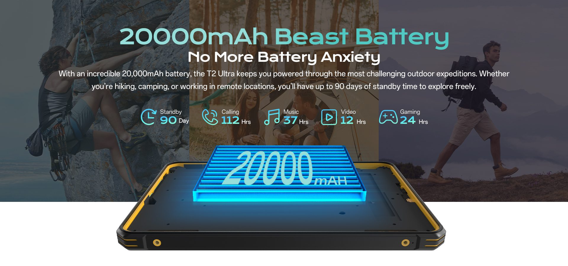 The tablet PC complies with IP68 and MIL-STD-810H protection standards, which guarantees its resistance to water, dust and shock. It can withstand falls from a height of 1.2 meters and operate at temperatures from -20 ° C to + 60 ° C. The 20,000 mAh battery will provide long battery life, and fast charging at 33 W will quickly restore the charge.