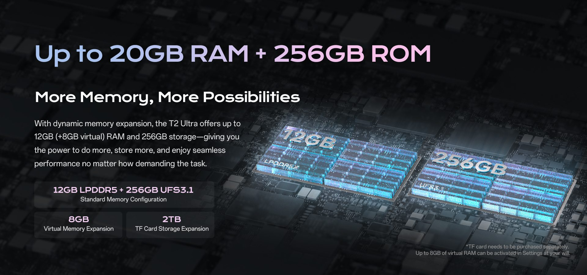 T2 Ultra comes with a powerful eight-core ARM CPU and runs on the Android 15 operating system with Google services (GMS).